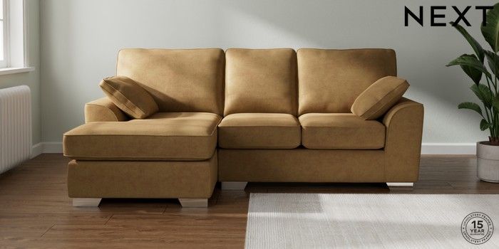 7.2.6 Buy Stamford Highback Small Sofa Chaise - Left Hand Luxe Chenille Honey Yellow Large Square Angle - Chrome Metal from the Laura Ashley online shop Click here to use our website with more accessibility support, for example screen readers