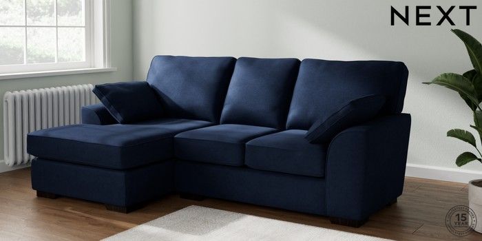 7.2.6 Buy Stamford Highback Small Sofa Chaise - Left Hand Luxe Chenille Navy Blue Large Square Angle - Dark from the Laura Ashley online shop Click here to use our website with more accessibility support, for example screen readers