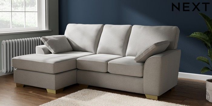 6.12.13 Buy Stamford Highback Small Sofa Chaise - Left Hand Natural Mix Light Grey Large Square Angle - Brushed Brass from the Laura Ashley online shop Click here to use our website with more accessibility support, for example screen readers