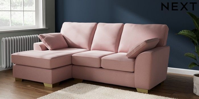 7.2.6 Buy Stamford Highback Small Sofa Chaise - Left Hand Natural Mix Light Rose Pink Large Square Angle - Brushed Brass from the Laura Ashley online shop Click here to use our website with more accessibility support, for example screen readers