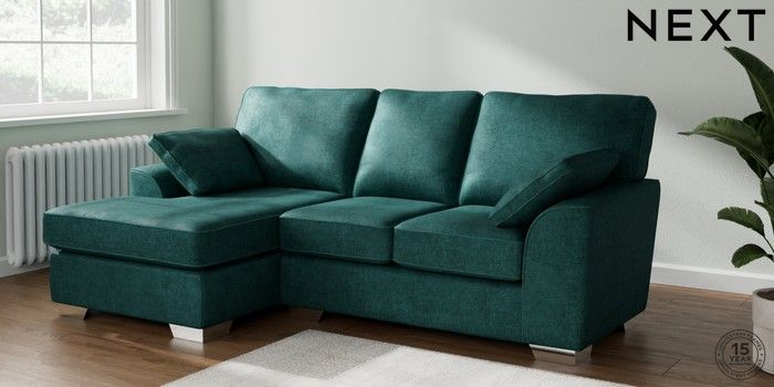 7.2.6 Buy Stamford Highback Small Sofa Chaise - Left Hand Plush Chenille Dark Teal Green Large Square Angle - Chrome Metal from the Laura Ashley online shop Click here to use our website with more accessibility support, for example screen readers