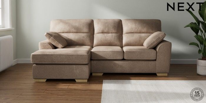 7.2.10 Buy Stamford Highback Small Sofa Chaise - Left Hand Plush Chenille Mid Natural Large Square Angle - Light from the Laura Ashley online shop Click here to use our website with more accessibility support, for example screen readers