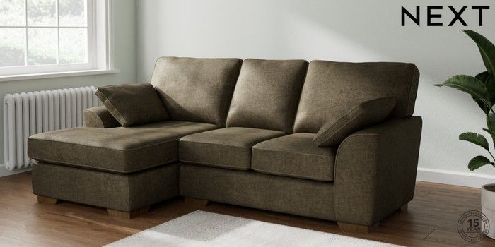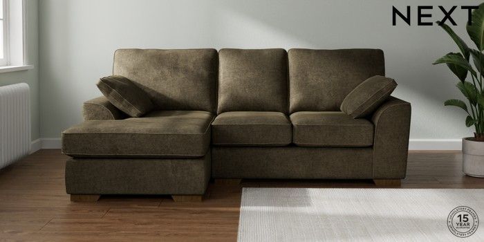 7.2.10 Buy Stamford Highback Small Sofa Chaise - Left Hand Plush Chenille Moss Green Large Square Angle - Mid from the Laura Ashley online shop Click here to use our website with more accessibility support, for example screen readers