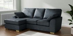 6.12.13 Buy Stamford Highback Small Sofa Chaise - Left Hand Plush Chenille Slate Blue Large Square Angle - Brushed Brass from the Laura Ashley online shop Click here to use our website with more accessibility support, for example screen readers