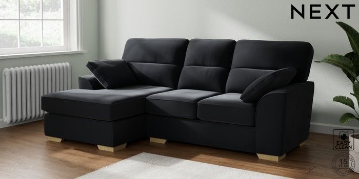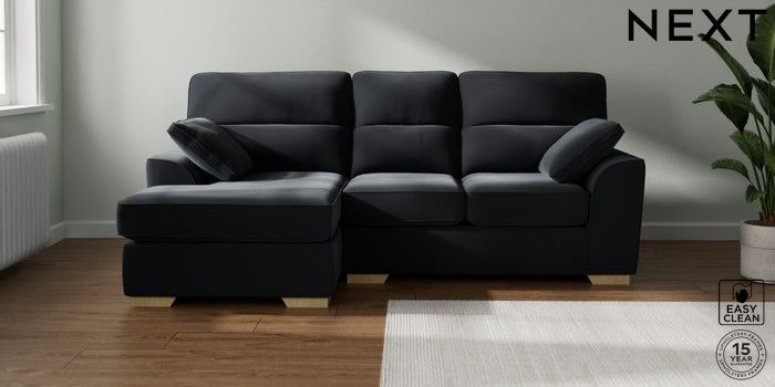 7.2.10 Buy Stamford Highback Small Sofa Chaise - Left Hand Plush Velvet Easy Clean Charcoal Grey Large Square Angle - Light from the Laura Ashley online shop Click here to use our website with more accessibility support, for example screen readers