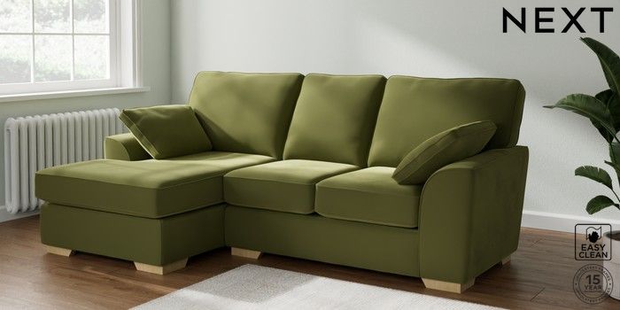6.12.1 Buy Stamford Highback Small Sofa Chaise - Left Hand Plush Velvet Easy Clean Mid Olive Green Large Square Angle - Light from the Laura Ashley online shop Click here to use our website with more accessibility support, for example screen readers