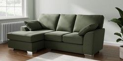 6.12.13 Buy Stamford Highback Small Sofa Chaise - Left Hand Relaxed Linen Look Dark Green Large Square Angle - Chrome Metal from the Laura Ashley online shop Click here to use our website with more accessibility support, for example screen readers