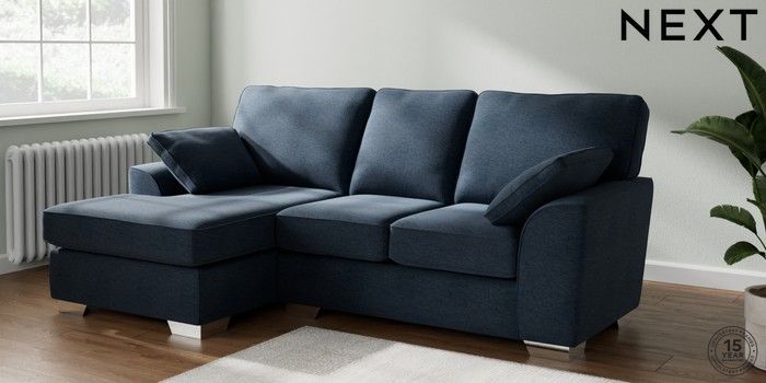 6.12.1 Buy Stamford Highback Small Sofa Chaise - Left Hand Ripple Chenille Dark Blue Large Square Angle - Chrome Metal from the Laura Ashley online shop Click here to use our website with more accessibility support, for example screen readers
