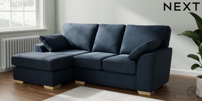 7.2.6 Buy Stamford Highback Small Sofa Chaise - Left Hand Ripple Chenille Dark Blue Large Square Angle - Light from the Laura Ashley online shop Click here to use our website with more accessibility support, for example screen readers