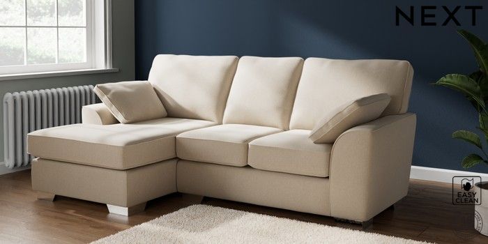 7.2.6 Buy Stamford Highback Small Sofa Chaise - Left Hand Tweedy Blend Easy Clean Oyster Large Square Angle - Chrome Metal from the Laura Ashley online shop Click here to use our website with more accessibility support, for example screen readers