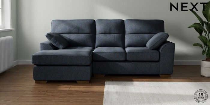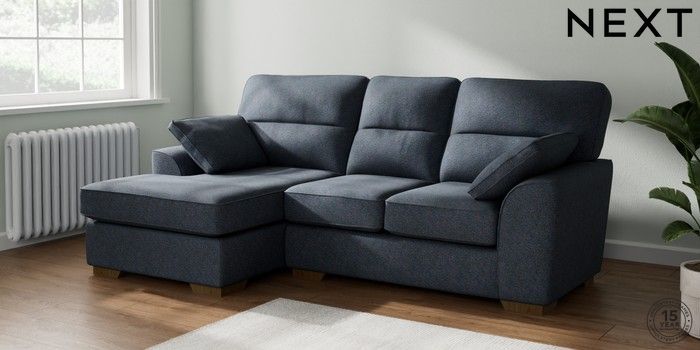 7.2.10 Buy Stamford Highback Small Sofa Chaise - Left Hand Tweedy Chenille Navy Blue Large Square Angle - Mid from the Laura Ashley online shop Click here to use our website with more accessibility support, for example screen readers