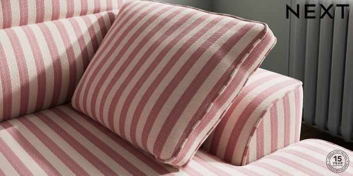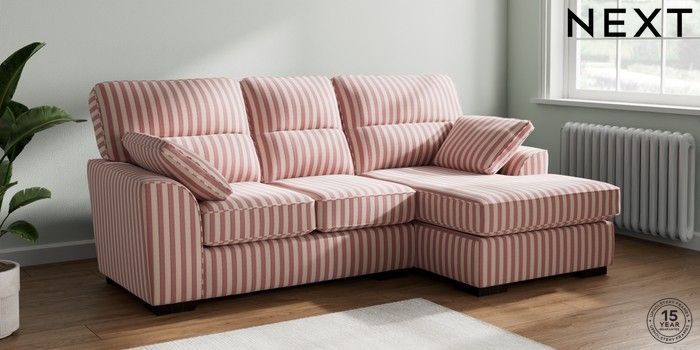 7.3.1 Buy Stamford Highback Small Sofa Chaise - Right Hand Bold Chenille Stripe Dark Pink Large Square Angle - Dark from the Laura Ashley online shop Click here to use our website with more accessibility support, for example screen readers