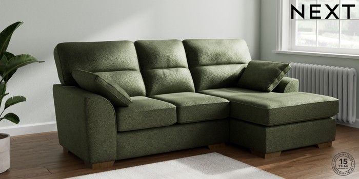 7.2.6 Buy Stamford Highback Small Sofa Chaise - Right Hand Boucle Chenille Dark Moss Green Large Square Angle - Mid from the Laura Ashley online shop Click here to use our website with more accessibility support, for example screen readers