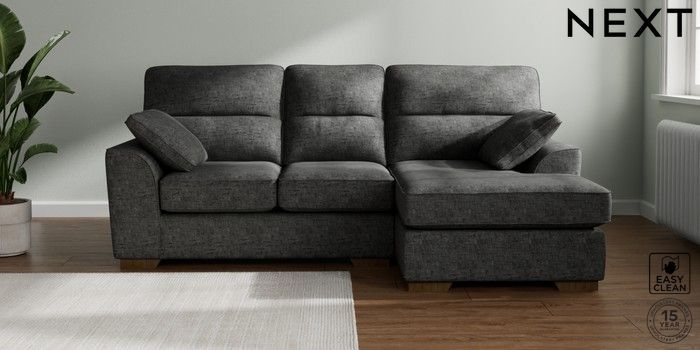 7.2.10 Buy Stamford Highback Small Sofa Chaise - Right Hand Boucle Weave Easy Clean Charcoal Grey Large Square Angle - Mid from the Laura Ashley online shop Click here to use our website with more accessibility support, for example screen readers