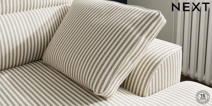 7.3.1 Buy Stamford Highback Small Sofa Chaise - Right Hand Chenille Stripe Moss Green Large Square Angle - Brushed Brass from the Laura Ashley online shop Click here to use our website with more accessibility support, for example screen readers