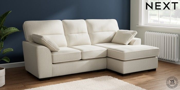 7.3.1 Buy Stamford Highback Small Sofa Chaise - Right Hand Chenille Stripe Moss Green Large Square Angle - Dark from the Laura Ashley online shop Click here to use our website with more accessibility support, for example screen readers