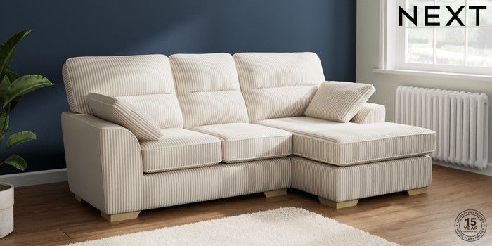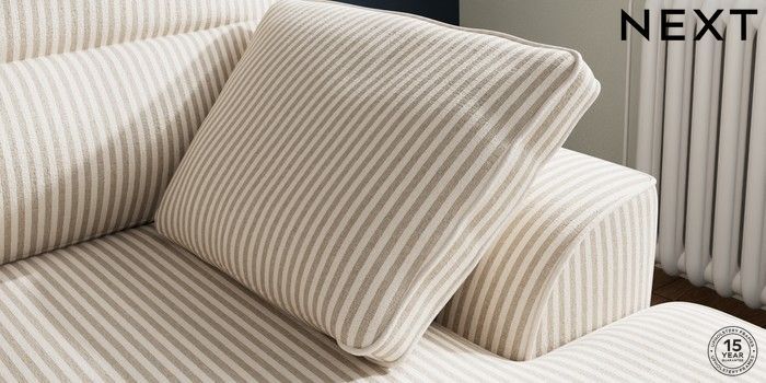 7.3.1 Buy Stamford Highback Small Sofa Chaise - Right Hand Chenille Stripe Natural Large Square Angle - Light from the Laura Ashley online shop Click here to use our website with more accessibility support, for example screen readers
