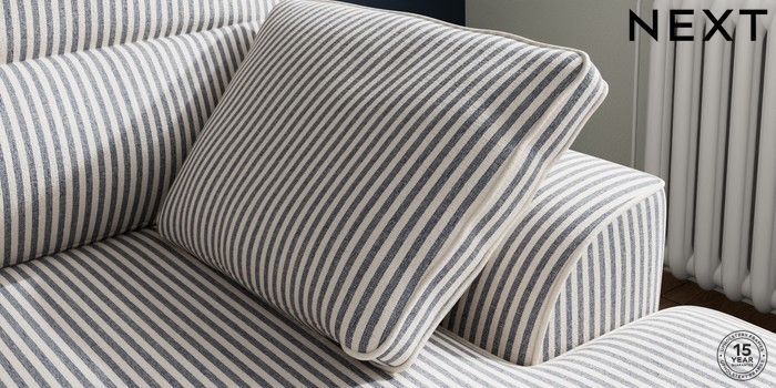 7.3.1 Buy Stamford Highback Small Sofa Chaise - Right Hand Chenille Stripe Slate Blue Large Square Angle - Dark from the Laura Ashley online shop Click here to use our website with more accessibility support, for example screen readers