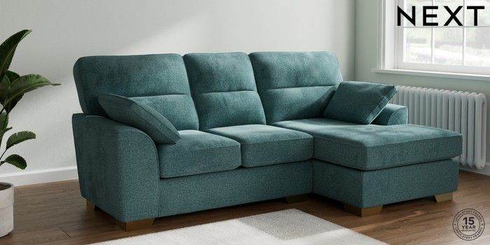 7.2.6 Buy Stamford Highback Small Sofa Chaise - Right Hand Chunky Chenille Mid Teal Green Large Square Angle - Brushed Brass from the Laura Ashley online shop Click here to use our website with more accessibility support, for example screen readers