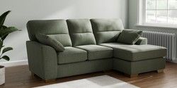 6.12.13 Buy Stamford Highback Small Sofa Chaise - Right Hand Chunky Texture Mid Forest Green Large Square Angle - Brushed Brass from the Laura Ashley online shop Click here to use our website with more accessibility support, for example screen readers