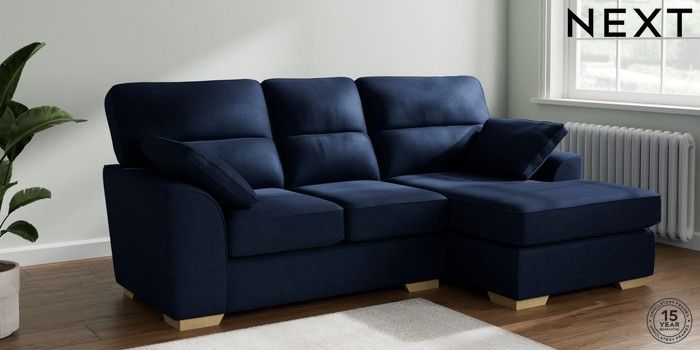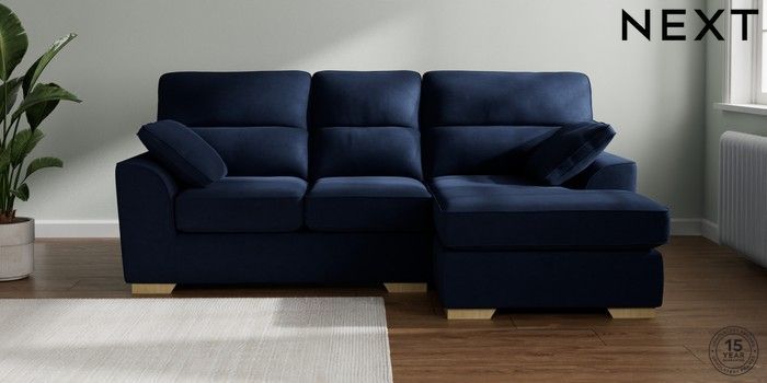 7.2.6 Buy Stamford Highback Small Sofa Chaise - Right Hand Luxe Chenille Navy Blue Large Square Angle - Light from the Laura Ashley online shop Click here to use our website with more accessibility support, for example screen readers