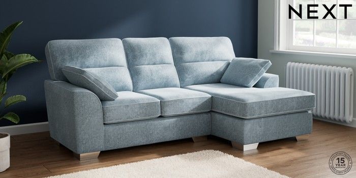 7.2.6 Buy Stamford Highback Small Sofa Chaise - Right Hand Plush Chenille Light Blue Large Square Angle - Chrome Metal from the Laura Ashley online shop Click here to use our website with more accessibility support, for example screen readers