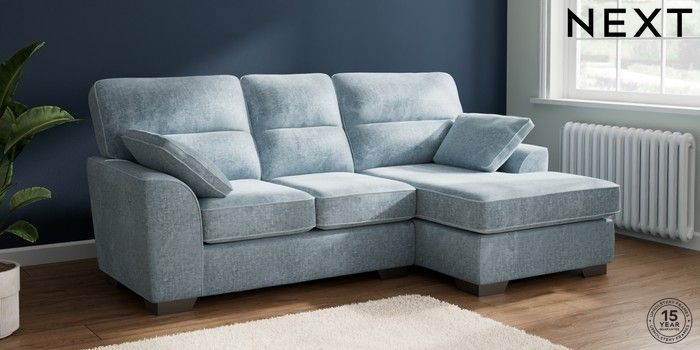 7.2.6 Buy Stamford Highback Small Sofa Chaise - Right Hand Plush Chenille Light Blue Large Square Angle - Gunmetal from the Laura Ashley online shop Click here to use our website with more accessibility support, for example screen readers