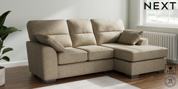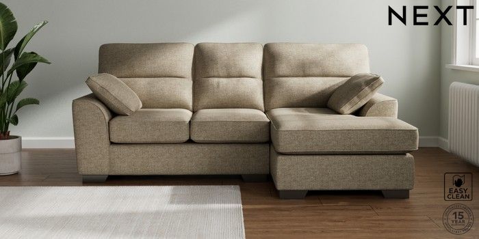 7.2.6 Buy Stamford Highback Small Sofa Chaise - Right Hand Woven Chenille Easy Clean Mid Natural Large Square Angle - Gunmetal from the Laura Ashley online shop Click here to use our website with more accessibility support, for example screen readers