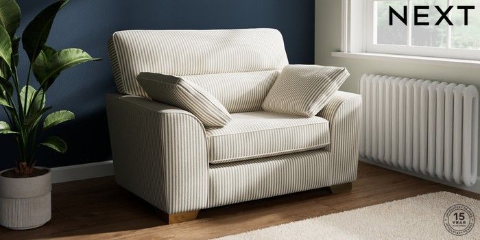 7.3.1 Buy Stamford Highback Snuggle Chenille Stripe Moss Green Large Square Angle - Brushed Brass from the Laura Ashley online shop Click here to use our website with more accessibility support, for example screen readers