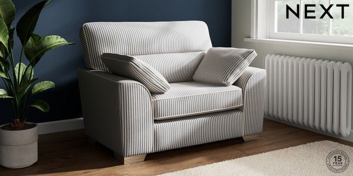 7.3.1 Buy Stamford Highback Snuggle Chenille Stripe Slate Blue Large Square Angle - Chrome Metal from the Laura Ashley online shop Click here to use our website with more accessibility support, for example screen readers