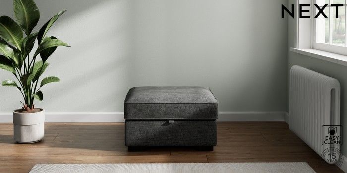7.2.6 Buy Stamford Highback Storage Footstool Boucle Weave Easy Clean Charcoal Grey Square Angle - Dark from the Laura Ashley online shop Click here to use our website with more accessibility support, for example screen readers