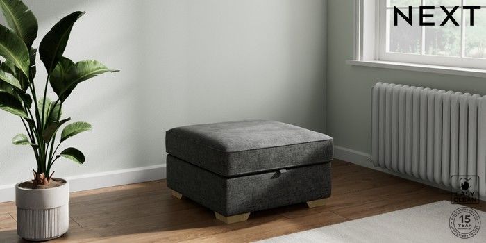 7.2.10 Buy Stamford Highback Storage Footstool Boucle Weave Easy Clean Charcoal Grey Square Angle - Light from the Laura Ashley online shop Click here to use our website with more accessibility support, for example screen readers