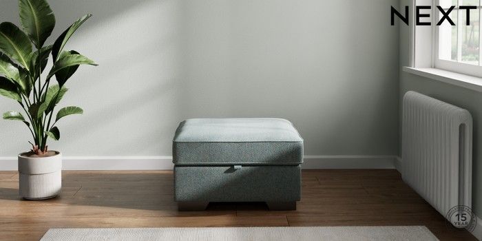 7.2.6 Buy Stamford Highback Storage Footstool Chunky Marl Mid Blue Square Angle - Gunmetal from the Laura Ashley online shop Click here to use our website with more accessibility support, for example screen readers