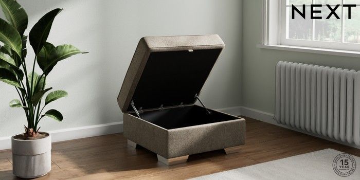 7.2.6 Buy Stamford Highback Storage Footstool Cotswold Chenille Mid Mink Brown Square Angle - Chrome Metal from the Laura Ashley online shop Click here to use our website with more accessibility support, for example screen readers