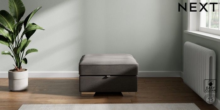 7.2.6 Buy Stamford Highback Storage Footstool Fine Chenille Easy Clean Dark Smoke Grey Square Angle - Chrome Metal from the Laura Ashley online shop Click here to use our website with more accessibility support, for example screen readers