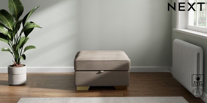 7.2.6 Buy Stamford Highback Storage Footstool Fine Chenille Easy Clean Mid Taupe Brown Square Angle - Brushed Brass from the Laura Ashley online shop Click here to use our website with more accessibility support, for example screen readers