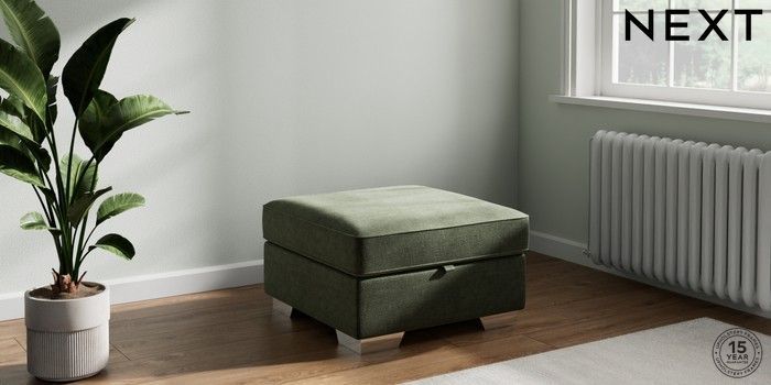 7.2.6 Buy Stamford Highback Storage Footstool Luxe Chenille Mid Green Square Angle - Chrome Metal from the Laura Ashley online shop Click here to use our website with more accessibility support, for example screen readers