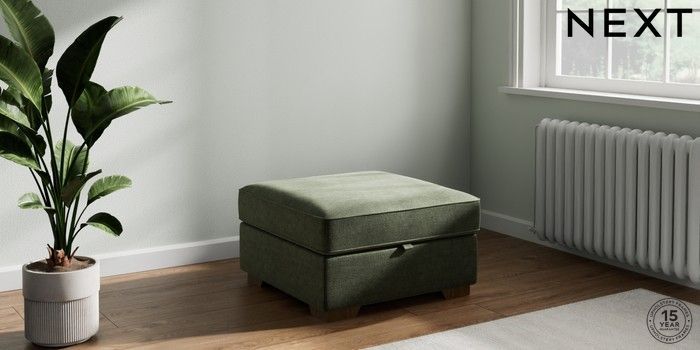 7.2.6 Buy Stamford Highback Storage Footstool Luxe Chenille Mid Green Square Angle - Mid from the Laura Ashley online shop Click here to use our website with more accessibility support, for example screen readers