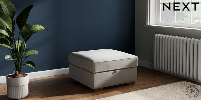7.2.10 Buy Stamford Highback Storage Footstool Natural Mix Light Grey Square Angle - Mid from the Laura Ashley online shop Click here to use our website with more accessibility support, for example screen readers