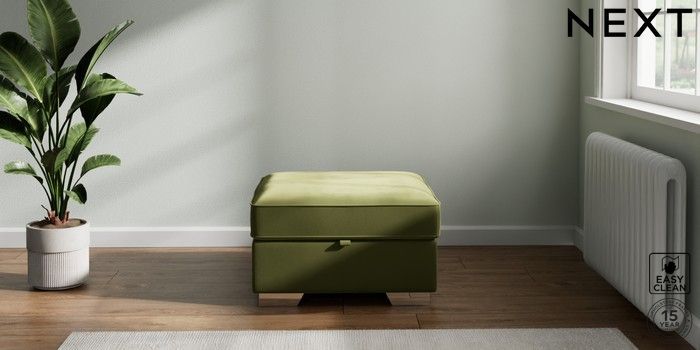 7.2.6 Buy Stamford Highback Storage Footstool Plush Velvet Easy Clean Mid Olive Green Square Angle - Chrome Metal from the Laura Ashley online shop Click here to use our website with more accessibility support, for example screen readers