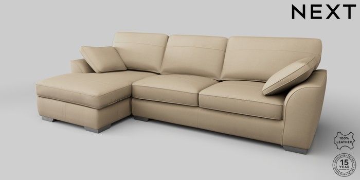 6.12.1 Buy Stamford Leather Medium Sofa Chaise - Left Hand Turin Leather Light Natural Large Square Angle - Gunmetal from the Laura Ashley online shop Click here to use our website with more accessibility support, for example screen readers
