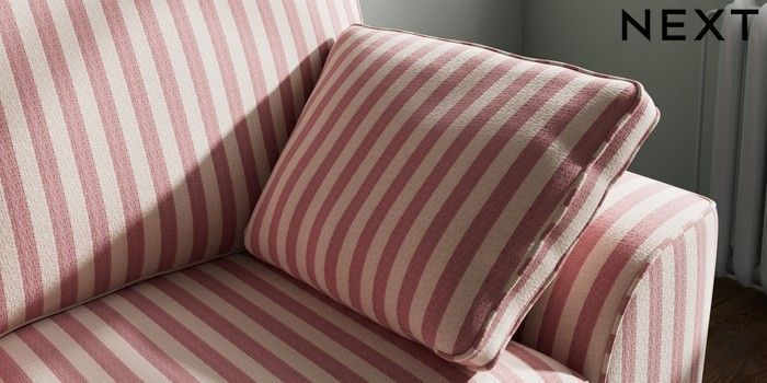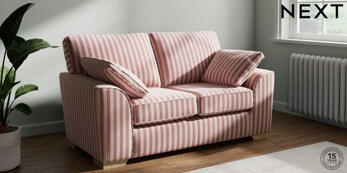 7.3.1 Buy Stamford 2 Seater Small Sofa Bold Chenille Stripe Dark Pink Large Square Angle - Light from the Laura Ashley online shop Click here to use our website with more accessibility support, for example screen readers