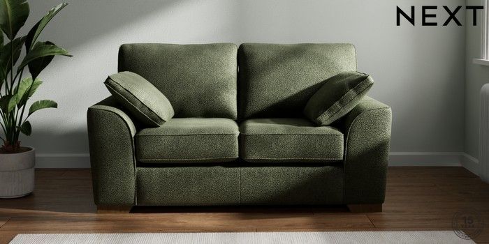7.2.6 Buy Stamford 2 Seater Small Sofa Boucle Chenille Dark Moss Green Large Square Angle - Mid from the Laura Ashley online shop Click here to use our website with more accessibility support, for example screen readers