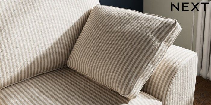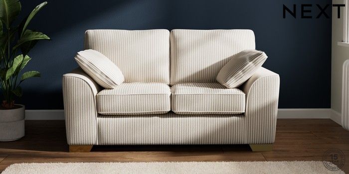 7.3.1 Buy Stamford 2 Seater Small Sofa Chenille Stripe Natural Large Square Angle - Brushed Brass from the Laura Ashley online shop Click here to use our website with more accessibility support, for example screen readers