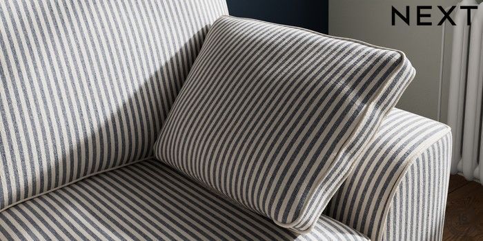 7.3.1 Buy Stamford 2 Seater Small Sofa Chenille Stripe Slate Blue Large Square Angle - Light from the Laura Ashley online shop Click here to use our website with more accessibility support, for example screen readers