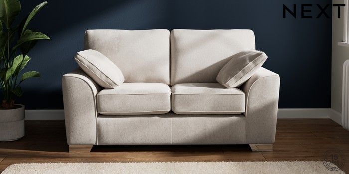 7.2.6 Buy Stamford 2 Seater Small Sofa Chunky Chenille Oyster Large Square Angle - Chrome Metal from the Laura Ashley online shop Click here to use our website with more accessibility support, for example screen readers