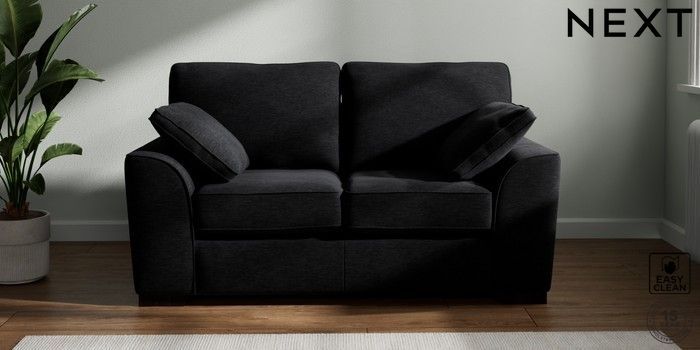 7.2.6 Buy Stamford 2 Seater Small Sofa Fine Chenille Easy Clean Black Large Square Angle - Dark from the Laura Ashley online shop Click here to use our website with more accessibility support, for example screen readers