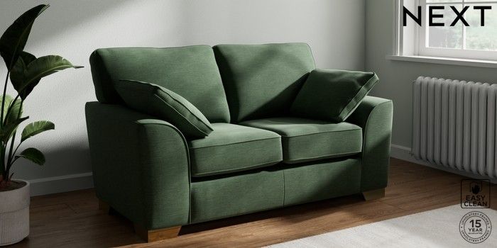 7.2.6 Buy Stamford 2 Seater Small Sofa Fine Chenille Easy Clean Mid Khaki Green Large Square Angle - Brushed Brass from the Laura Ashley online shop Click here to use our website with more accessibility support, for example screen readers