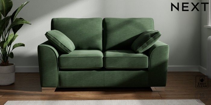 7.2.6 Buy Stamford 2 Seater Small Sofa Fine Chenille Easy Clean Mid Khaki Green Large Square Angle - Chrome Metal from the Laura Ashley online shop Click here to use our website with more accessibility support, for example screen readers