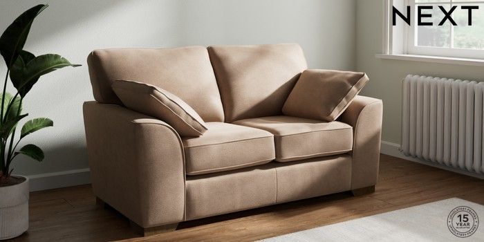 7.2.6 Buy Stamford 2 Seater Small Sofa Luxe Chenille Mid Natural Large Square Angle - Mid from the Laura Ashley online shop Click here to use our website with more accessibility support, for example screen readers
